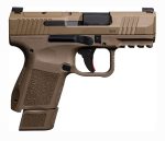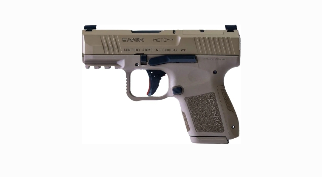 “The Canik Mete MC9 is chambered in 9×19 mm with a capacity of 12+1 and 15+1 (both magazine optionsincluded in the standard packaging). The MC9 supports an overall length of 6.1 inches, a width ofjust 1.12 inches, a height of 4.52 inches (with magazine), a barrel length of 3.18 inches, and an unloaded weight of a mere 21.2 ounces. The Mete MC9 comes optics ready with 100% co-witness capability. Each Mete MC9 comes in a hard case and includes the two magazines, an inside the waistband holster, 3 sized backstraps, tool kit and punch, speed loader, pinky rest, and cleaning kit. The Mete MC9 will be initially offered in black, flat dark earth (FDE), and two tone black/fde.